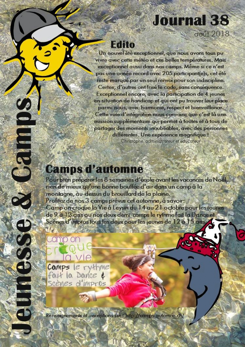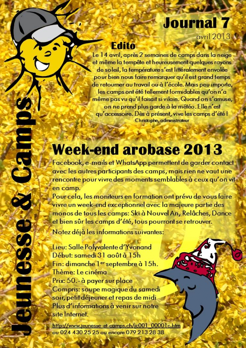 1er journal de Jeunesse et Camps: convocation à l'Assemblée Générale, le camp de ski et de snowboard à Saas Grund et l'annonce des camps d'été