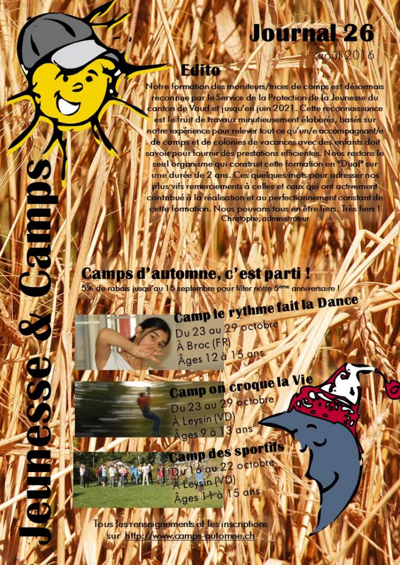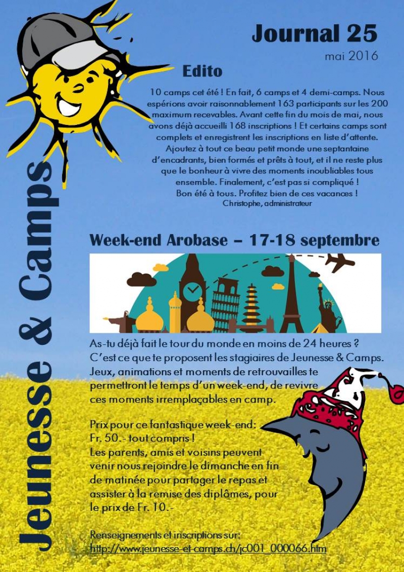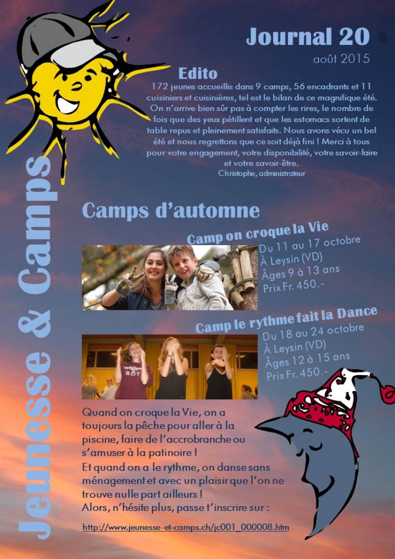 Tous nos camps d'été en un clin d'oeil, et l'annonce de nos week-ends Arobase et Esperluette ainsi que notre formation pour les responsables de camps