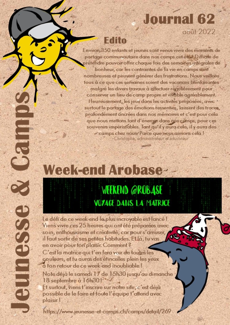 Annonce du week-end Arobase et camps d'automne, mais surtout, les camps d'été !